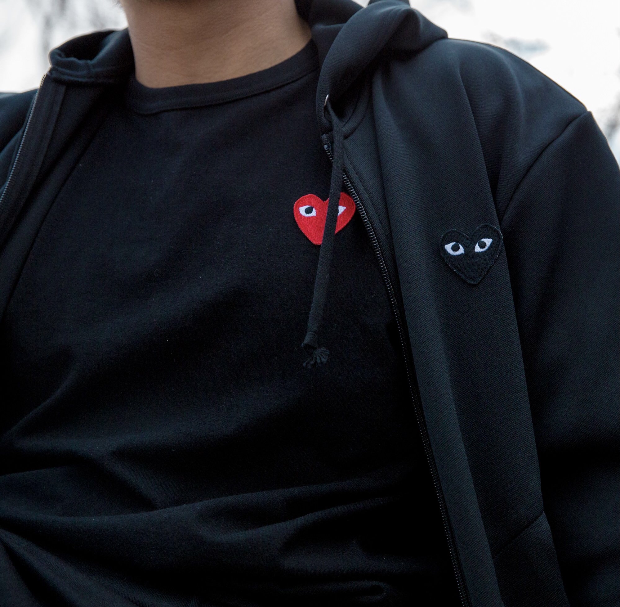 PLAY COMME des GARÇONS con il suo iconico logo è senza dubbio la più riconoscibile tra le tante e diverse linee di diffusione dell’impero CdG. L’amata immagine del cuore che fa capolino è stata disegnata dall’artista polacco Filip Pagowski, che ha contattato per la prima volta Rei Kawakubo negli anni ’80 con le foto di una performance / sfilata di moda. Successivamente ha partecipato a una serie di spettacoli maschili ed è stato scelto per lo spettacolo dell’estate 1992.
