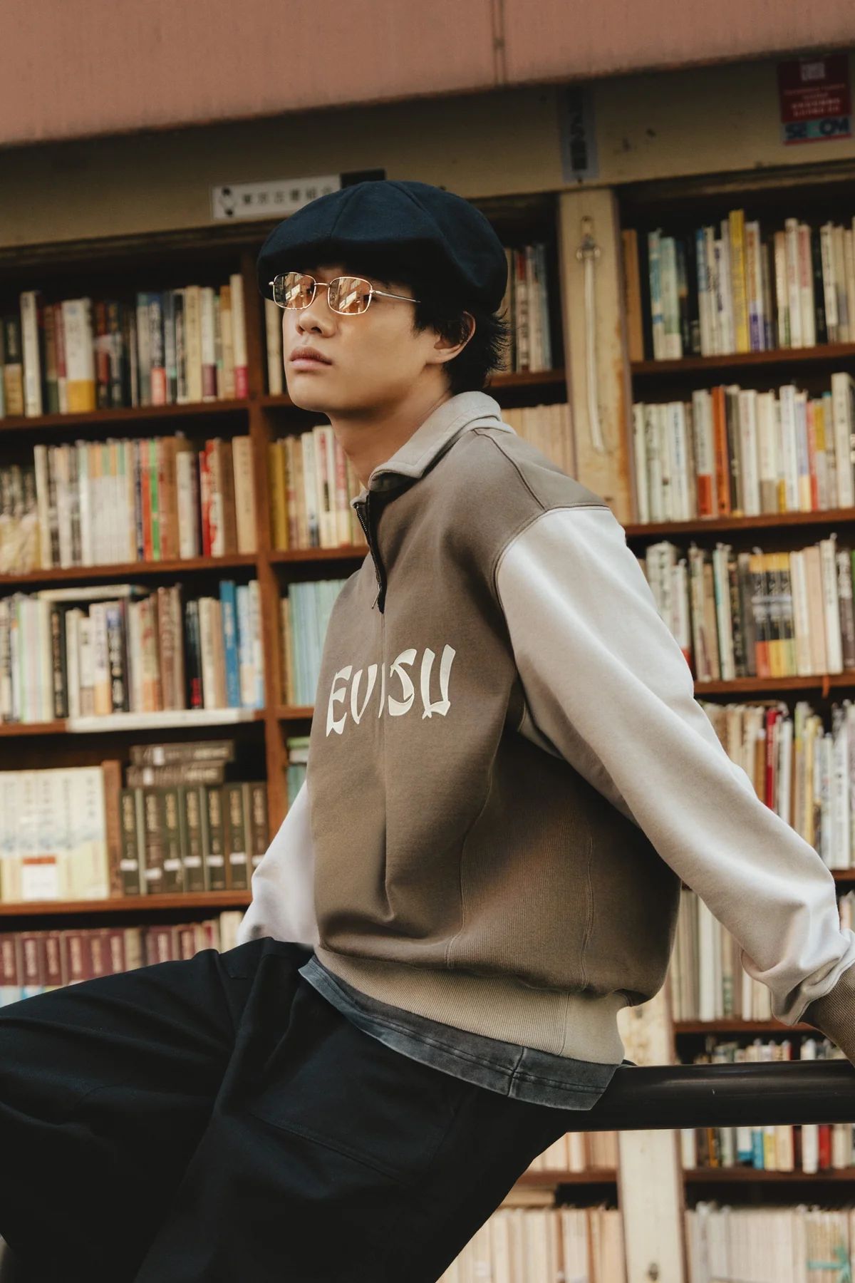 EVISU Felpa color-block con mezza zip e applicazione logo, vestibilità regolare