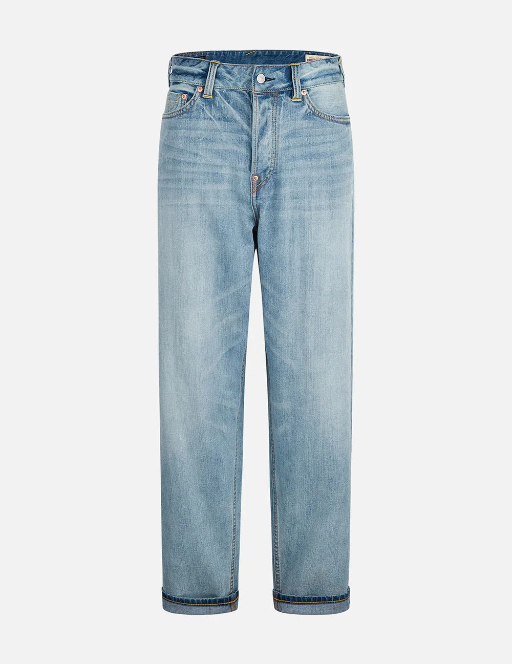 Caratterizzato da un taglio dritto e rilassato, questo ultimo modello del marchio è ideale per tutti i tipi di corpo ed è molto amato. La tonalità chiara, combinata con uno stile a 7 tasche e toppe a gabbiano sulle tasche posteriori, offre un’estetica casual quando gli orli sono arrotolati, mostrando un fascino naturale.