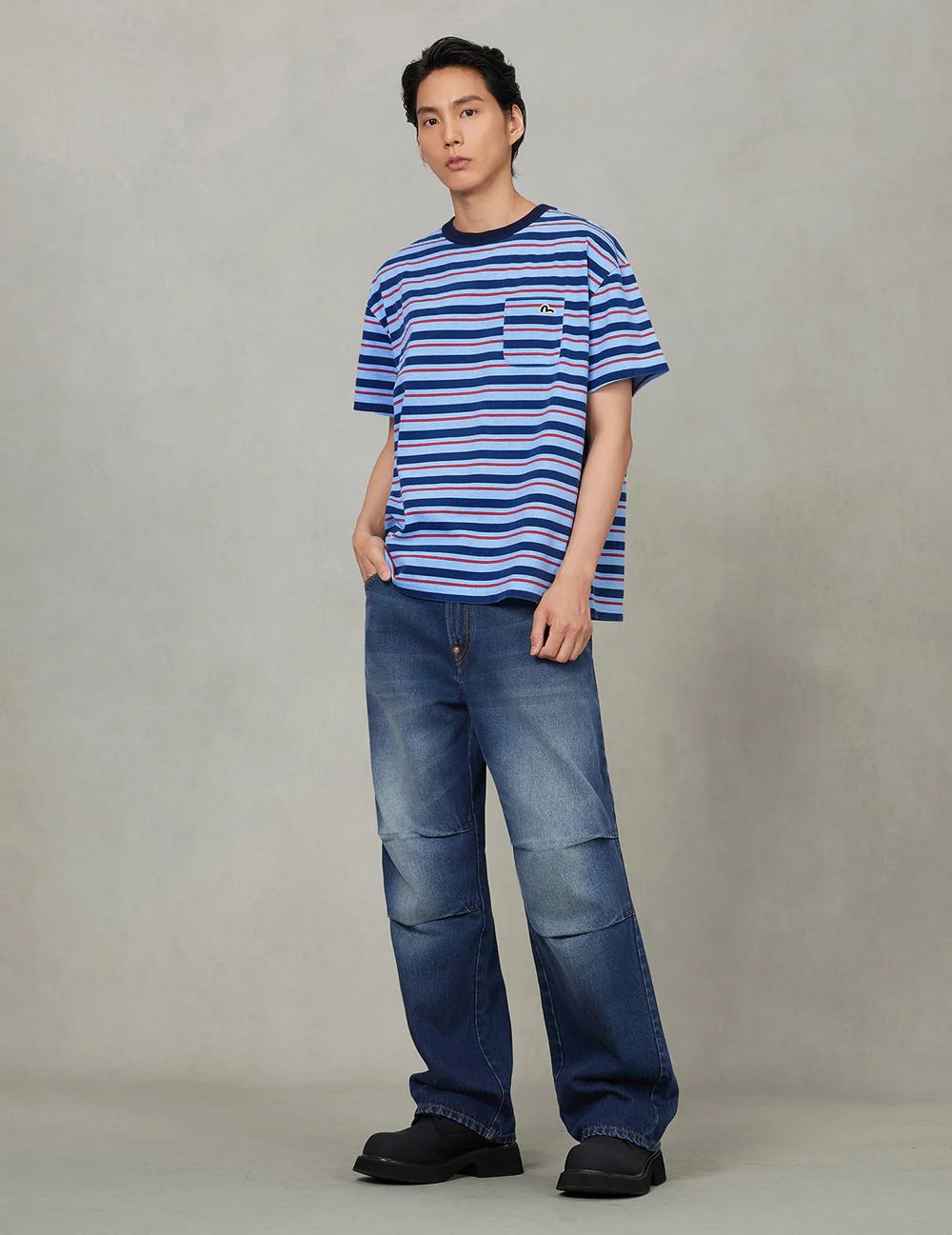 Progettati con un taglio sartoriale 3D, questi jeans modellano perfettamente le gambe, offrendo una silhouette audace e tridimensionale. Il dettaglio piegato sul ginocchio anteriore conferisce un tocco artistico e unico, rendendolo il punto focale del tuo look. Decorati con una stampa a gabbiano disegnata a mano sulla tasca posteriore, riflettono lo stile distintivo del marchio. Realizzati in denim scuro lavato, sono elegantemente resistenti, un capo essenziale per qualsiasi guardaroba alla moda.