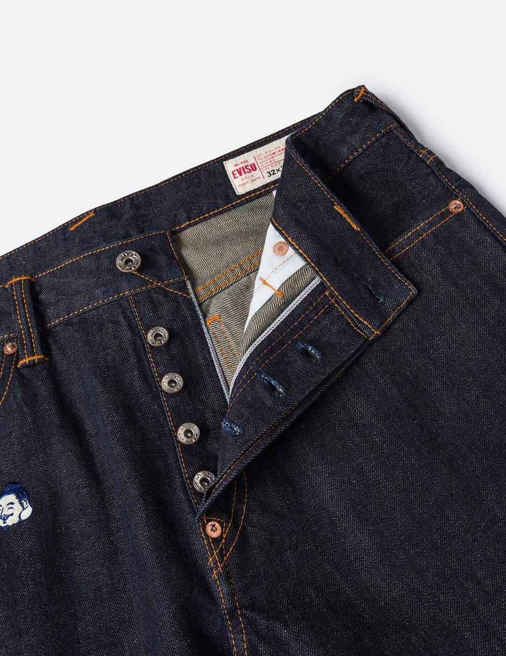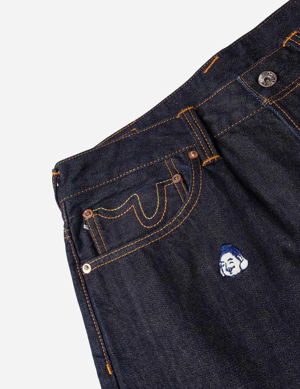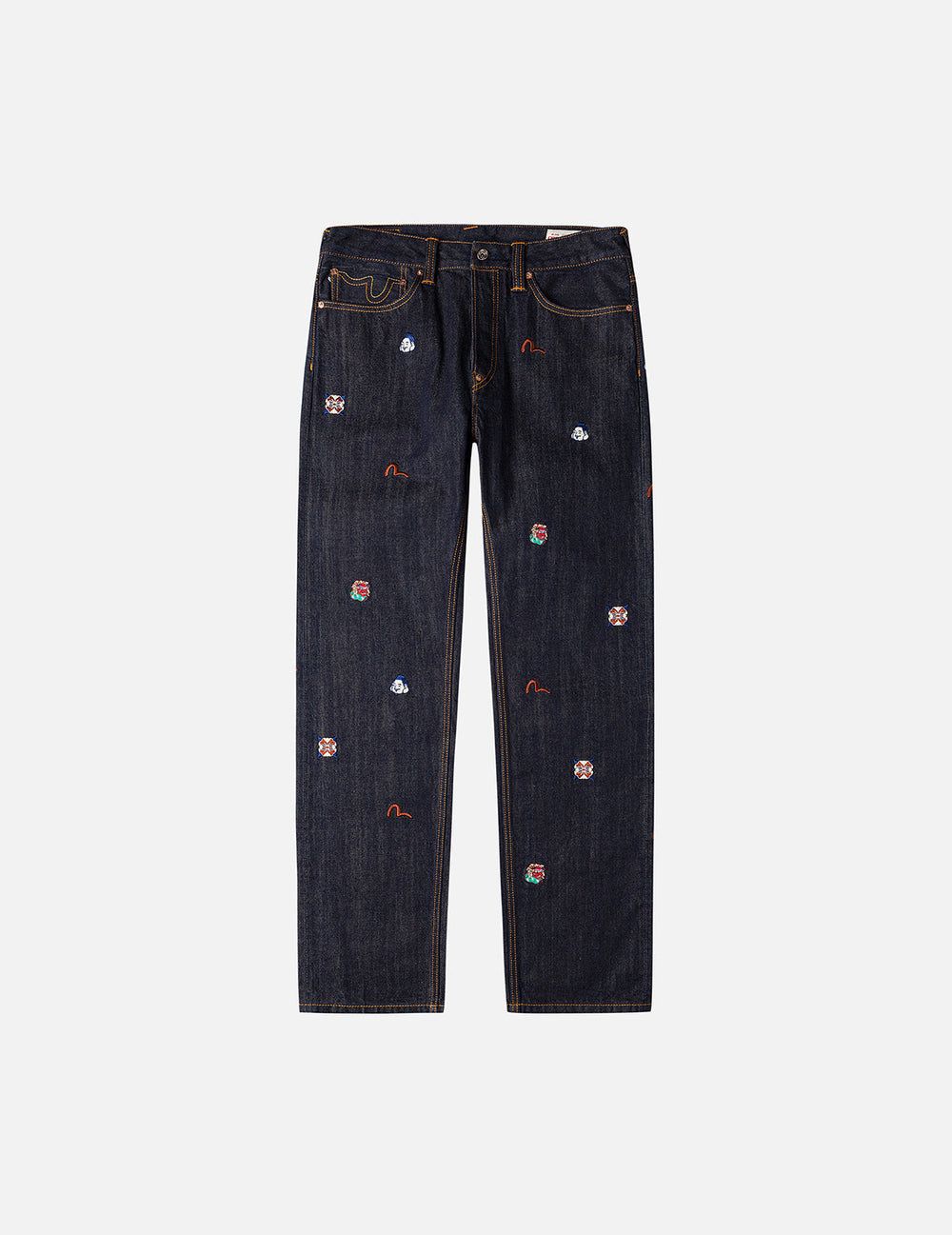 Questo paio di jeans mette in mostra la squisita fattura di EVISU con il suo esclusivo tema giocoso e i ricchi ricami. I pantaloni sono decorati con una varietร di motivi ricamati, tra cui la Divinitร , il Gabbiano e il Kamon, che riflettono i tratti classici e il significato culturale del marchio, esaltandone al contempo l’appeal visivo e la creativitร .