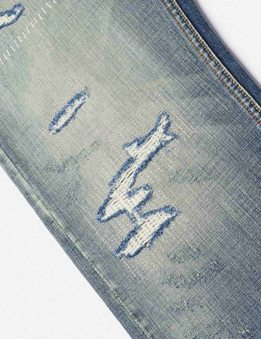 - Design a 7 tasche, ricamo gabbiano effetto consumato