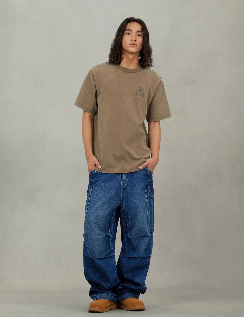 Questa t-shirt casual oversize in un tono marrone scuro è all’avanguardia della tendenza retrò! Il carattere “Ebisu” sul petto è discreto ma accattivante, mentre il logo EVISU e la scritta “Ebijuya” sul retro aggiungono un tocco moderno. La vestibilità ampia e il tessuto morbido si fondono armoniosamente, creando un look street cool che mette in mostra il tuo carattere audace!